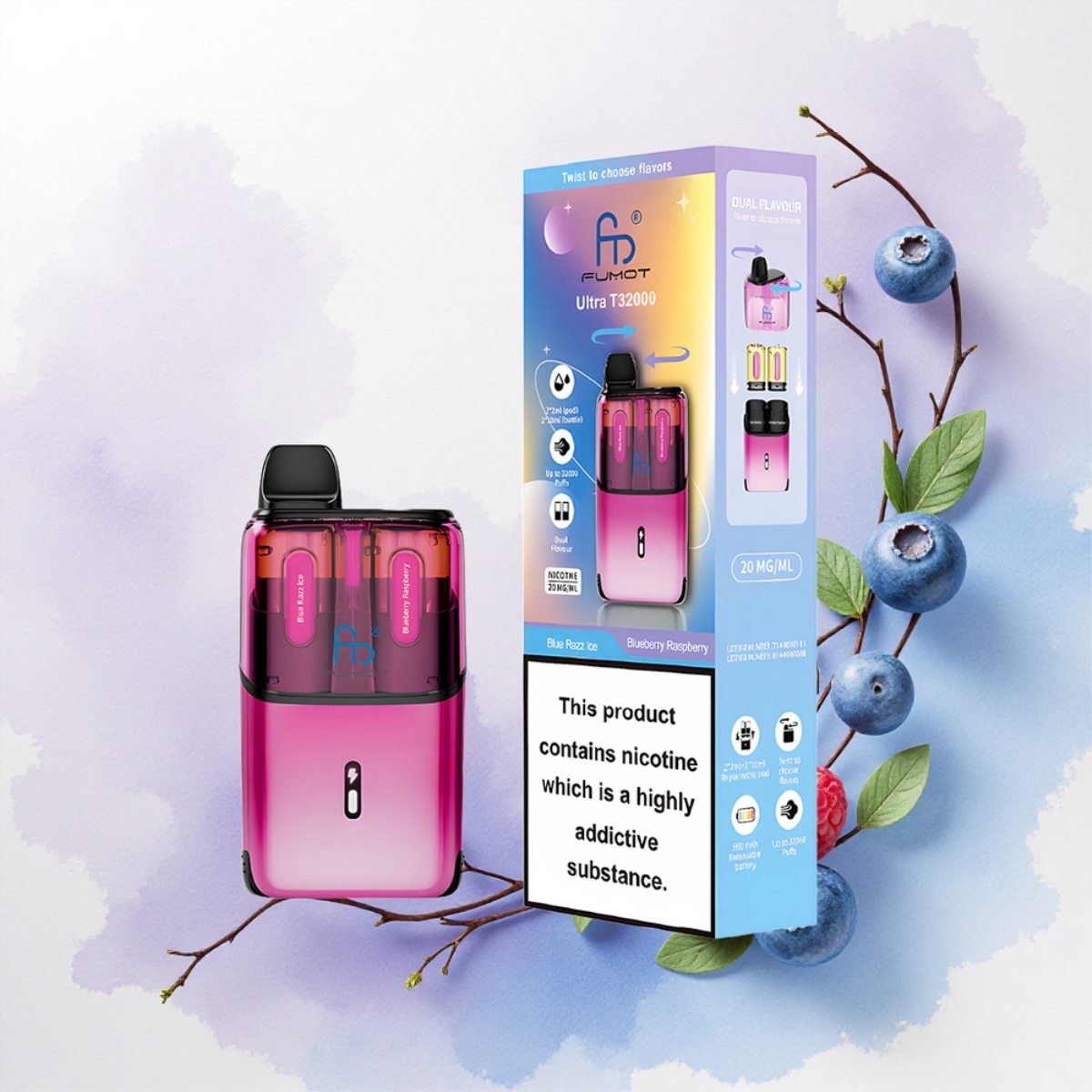 Fumot Ultra T32000 Puffs Kék Áfonya Málna Jég – 24ml Nikotin 20mg – 800mAh