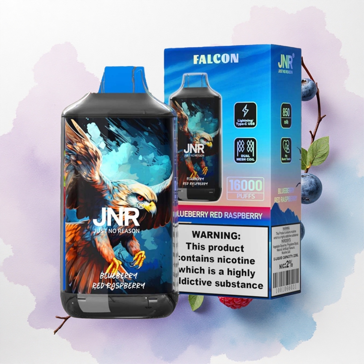 JNR Falcon 16000 Áfonya Vörös Málna 850mAh Dual Mesh Coil