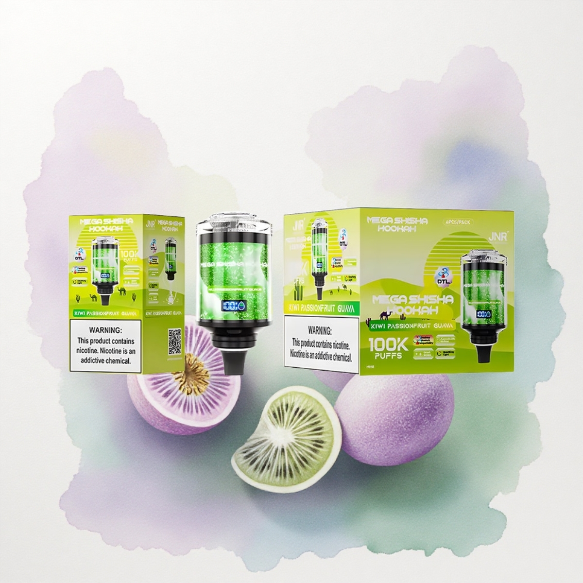 JNR Mega Shisha Hookah 100K Kivi Gránátalma Guava 2200mAh 60ml 2% nikotin