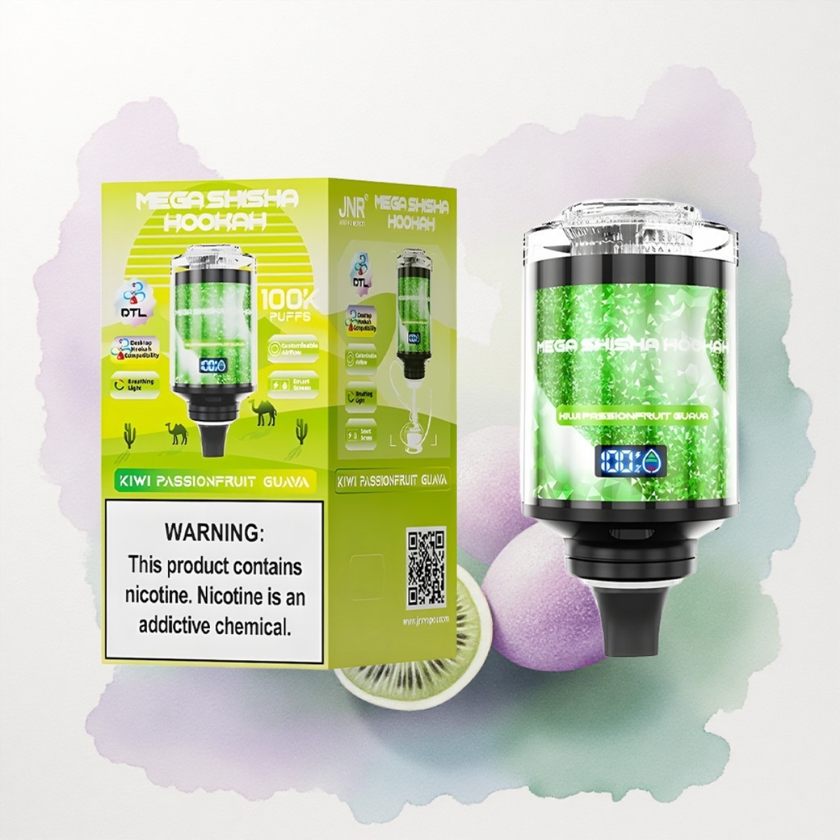JNR Mega Shisha Hookah 100K Kivi Gránátalma Guava 2200mAh 60ml 2% nikotin