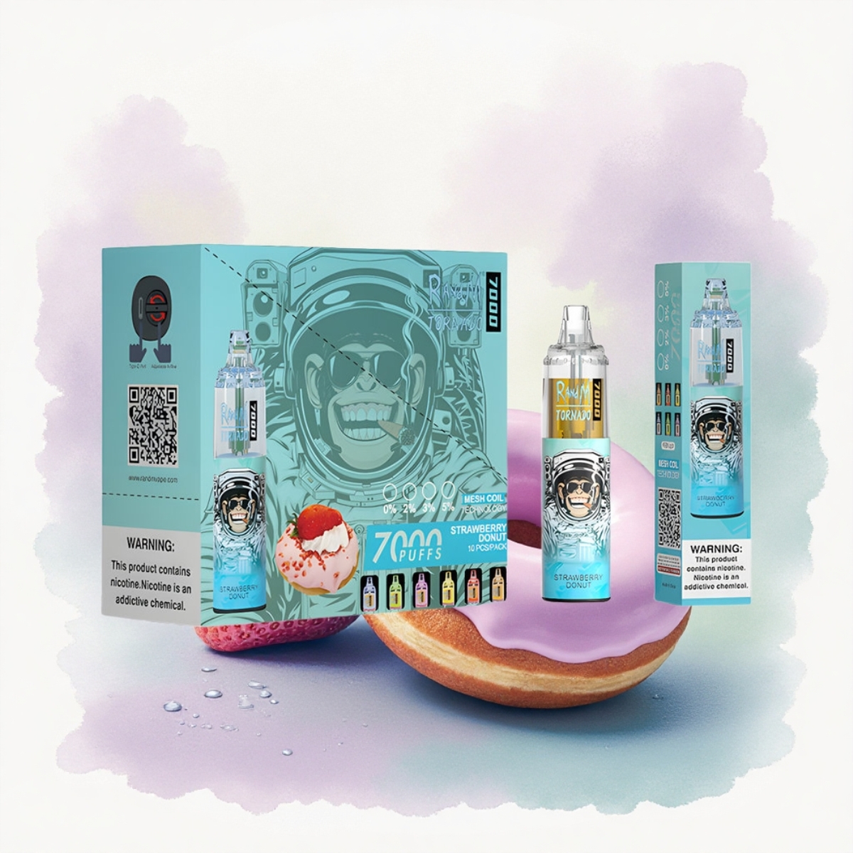 RandM Fumot Tornado 7000 Puffs Eper Fánk 850 mAh Mesh Tekercs Légbeállítás