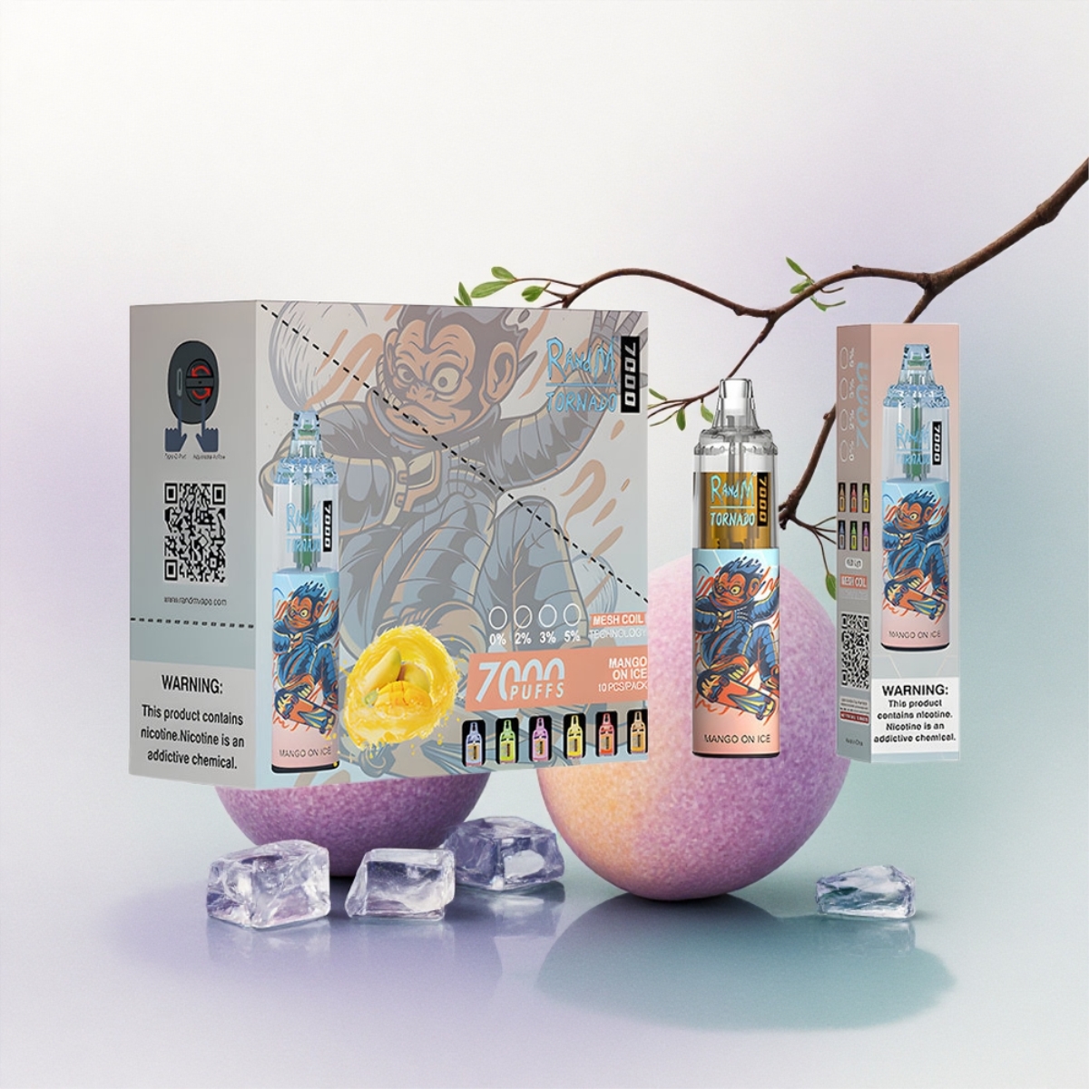 RandM Fumot Tornado 7000 Puffs Mangó Jégen 850 mAh Mesh Coil 5% Nicotine