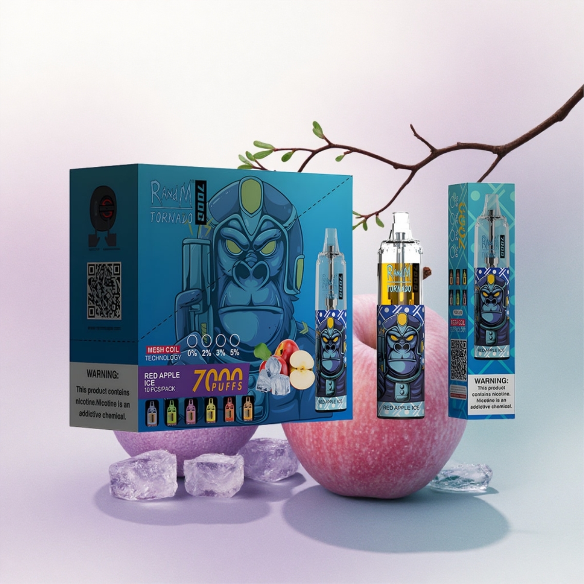 RandM Fumot Tornado 7000 Puffs Piros Alma Jég Mesh Tekercs 850 mAh