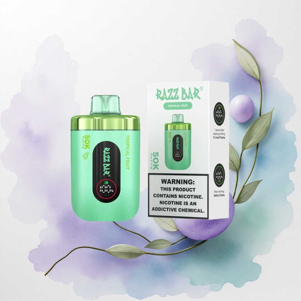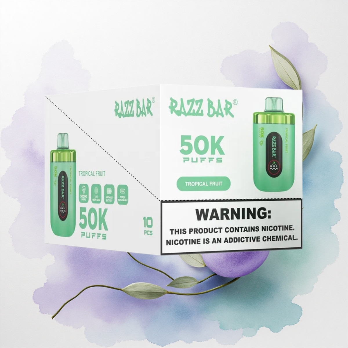 Razz Bar 50K Puffs Trópusi Gyümölcs 650 mAh 1.0 Ohm Hálótekercs